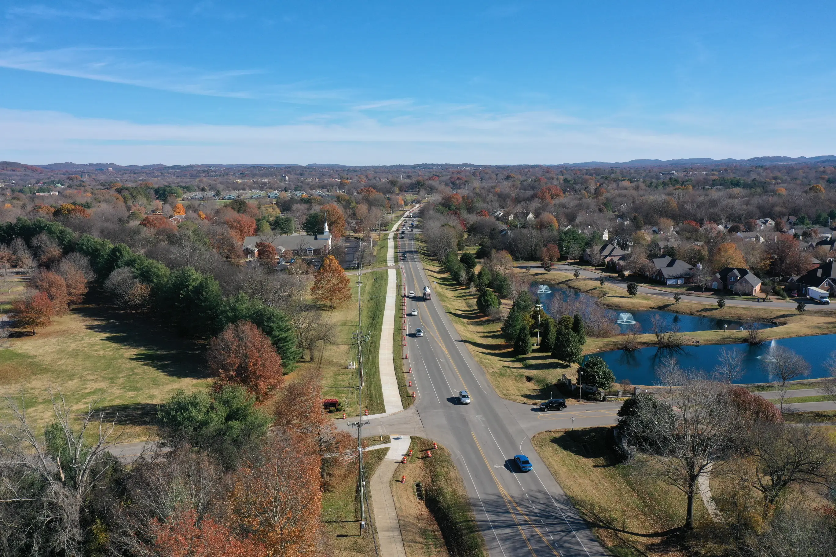 We provided roadway and utility design to support the next phase of the Westhaven development in Franklin, including curve realignment, turn lanes, sidewalks, bike lanes, drainage, utilities, and ROW services. The project addressed safety concerns and access challenges along a narrow, outdated collector.