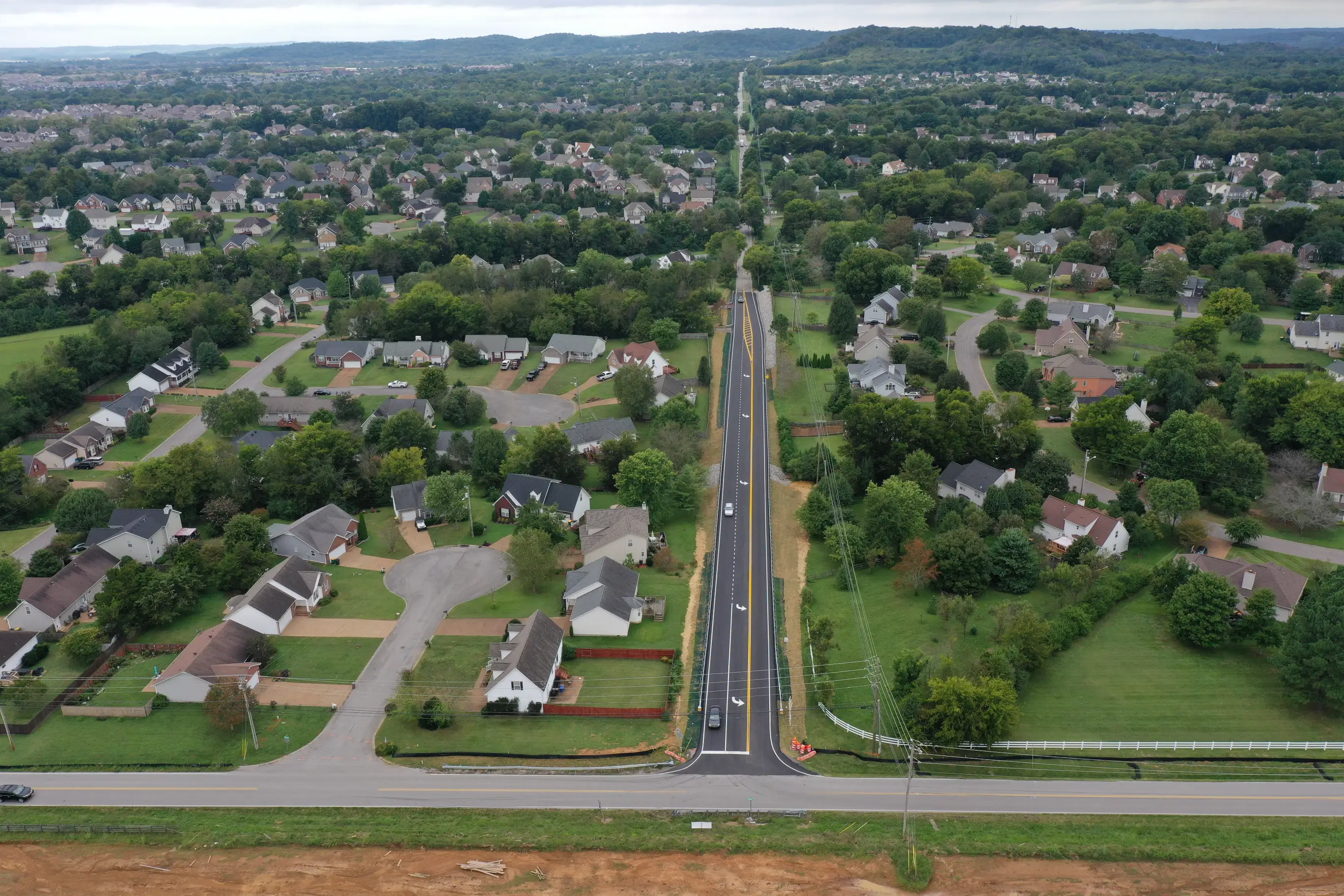 Corradino fast-tracked this critical connection to the I-65/Buckner Road Interchange in Spring Hill — widening the existing two-lane road to three lanes while staying within ROW limits. Services included survey, geotech, drainage, plan production, bidding support, and CEI. The project advanced from kickoff to construction within six months.